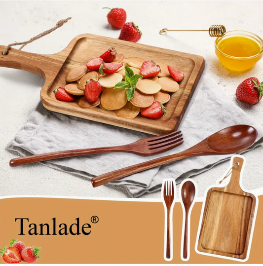 Laser Engraved Acacia Wood Cutting Board With Wooden Spoons And Forks Kitchen Chopping Boards With Handle Wooden Serving Tray Charcuterie Boards